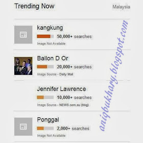Sebagai tambahan kemahiran anda untuk melihat keyword yang menjadi trend turut memberi kesan kepada trafik anda. Ada banyak laman yang dapat membantu anda untuk mengesan keyword-keyword yang sedang hangat antaranya google trend. Dari laman tersebut, anda dapat mengenalpasti keyword yang sedang meletop seperti isu kangkung baru-baru ini. Harus diingat, jika anda terlambat sedikit, maka blogger lain akan mendahului anda.